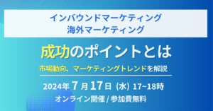 HOME>イベント・セミナー 終了エイスリー、「eスポーツ活用マーケティングの国内外のトレンドを先取り、メタバース広告やIPとしての活用価値などを解説」と題したオンラインセミナーを開催2024年12月19日終了エイスリーグループ、UUUMと共に「タレント・インフルエンサー活用のこれからのマーケティング、生活者を動かす手法とは」と題したオンラインセミナーを開催2024年9月26日終了エイスリー、ビヨンドとUUUMと共に「【インバウンド・海外マーケティング成功のポイントとは】市場動向、マーケティングトレンドを解説」と題したオンラインセミナーを開催2024年7月17日